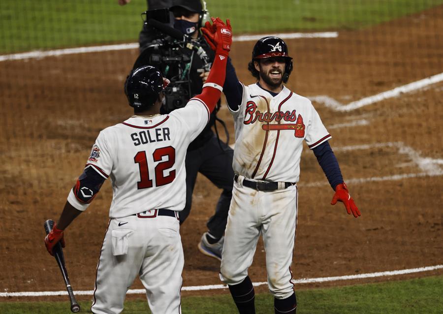 Soler y el campo corto Dansby Swanson pegaron cuadrangulares consecutivos para los Bravos, que vencieron 3-2 a los Astros y se ponen a un triunfo de conseguir el título de la Serie Mundial, que ahora está 3-1 a favor del equipo de Atlanta.
