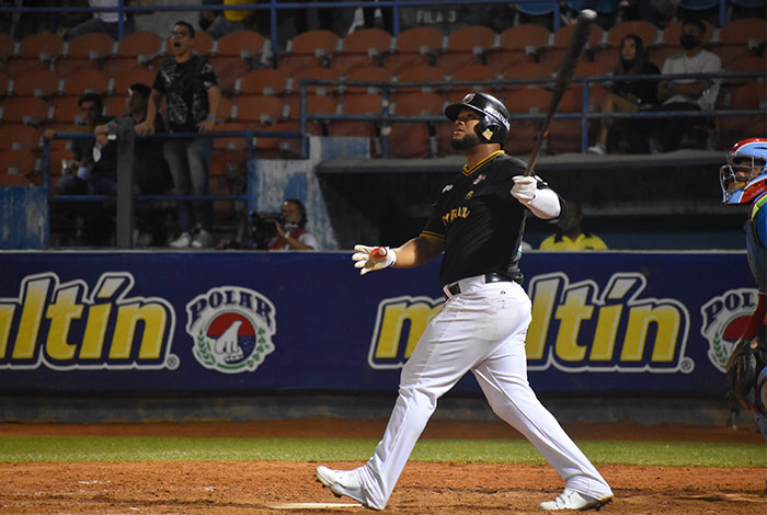 Con las bases llenas y dos outs en la pizarra, el toletero zurdo conectó un doblete impulsor de tres al jardín derecho, para poner a ganar al Caracas por 5-2.