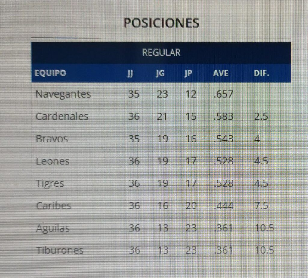 Tiburones (13-23), por su parte, culminó con registro de 2-4, agudizando la crisis que le tiene en el fondo de la clasificación, a seis encuentros de Tigres y Leones en el quinto puesto, el último que otorga un pase a la postemporada.