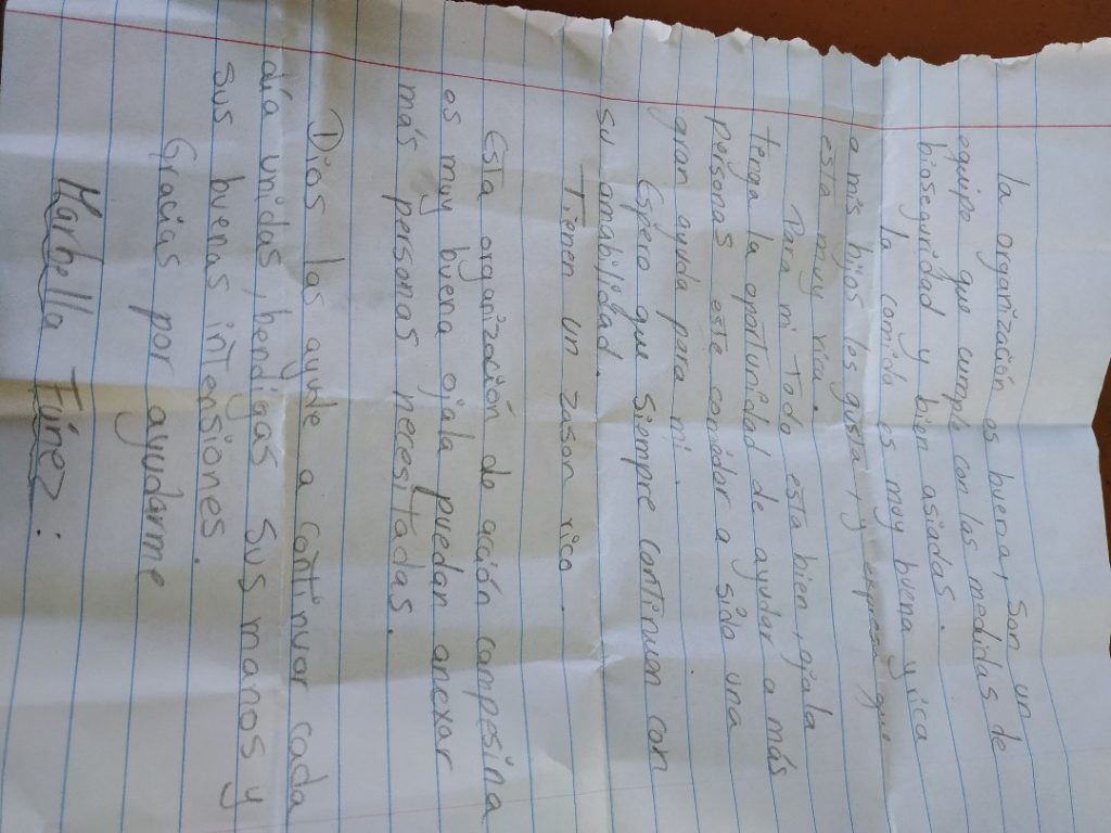 Evelyn cuenta que a partir de la segunda semana de trabajo pusieron un buzón de sugerencias y “los mensajes que nos llegaron nos hicieron llorar. Los mensajes de la gente son de agradecimiento y satisfacción. Se siente muy bien poder ayudar” comenta.