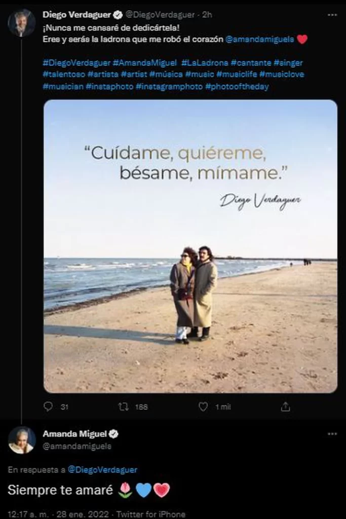 Una hora después del anuncio de la muerte del músico, su esposa, la cantante argentina Amanda Miguel, respondió con «siempre te amare», a la última publicación de Twitter que Diego Verdaguer le dedicó.