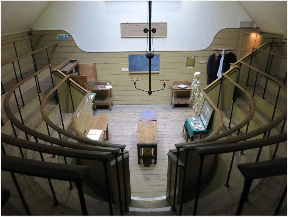 La mesa de operaciones situada en el centro del anfiteatro recuerda cómo los estudiantes del último año de Medicina observaban desde la grada los procedimientos y técnicas de los cirujanos: amputaciones de extremidades y mastectomías, litotomías (extracción de piedras de la vejiga) y trepanaciones (agujerear el cráneo para tratar traumatismos en la cabeza).