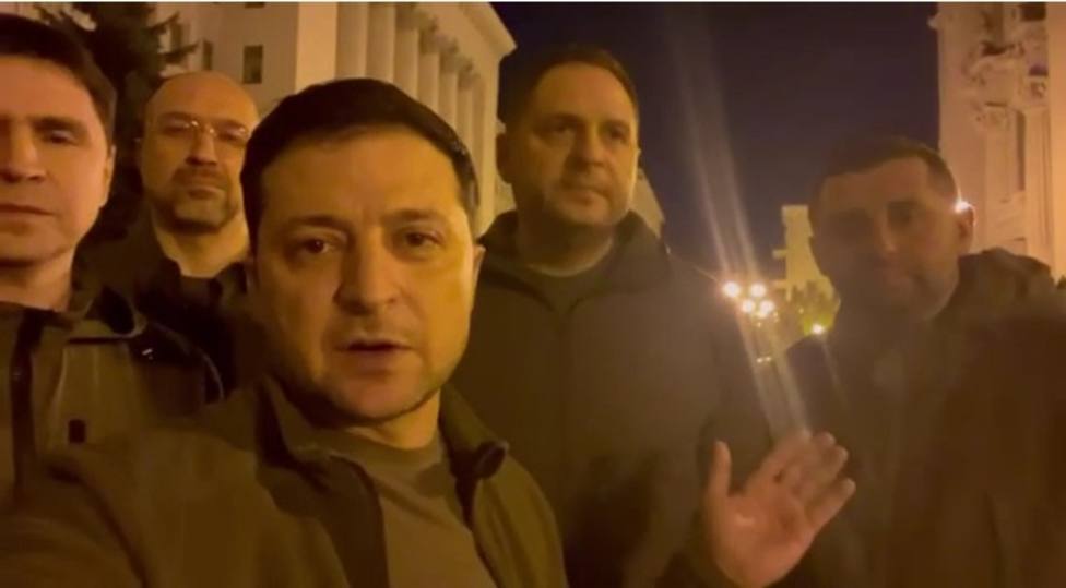 «Estamos aquí. Estamos en Kiev. Estamos defendiendo Ucrania», dice Zelenski en el vídeo de apenas 32 segundos, filmado por él mismo en la calle Bankova, delante de la Oficina del Presidente de Ucrania.