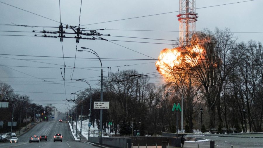 Desde Kiev, el asesor del Ministerio del Interior de Ucrania, Antón Geráschenko, informó de que las fuerzas rusas atacaron la torre de televisión de Kiev.