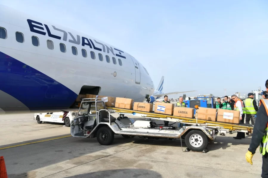El cargamento de los tres aviones de la aerolínea israelí EL AL aterrizará en las próximas horas en Varsovia, desde donde será trasladado por tierra hasta la frontera ucraniana.