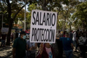 Unos 60 trabajadores protestaron este miércoles en Caracas para exigirle a Nicolás Maduro mejoras en sus condiciones laborales, con un salario que sea «suficiente», y respeto al convenio colectivo.