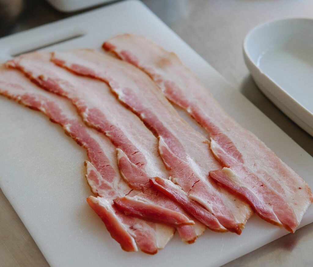 - Luego trocea la tocineta en los pedacitos más pequeños que puedas y agrégalos a la mezcla.