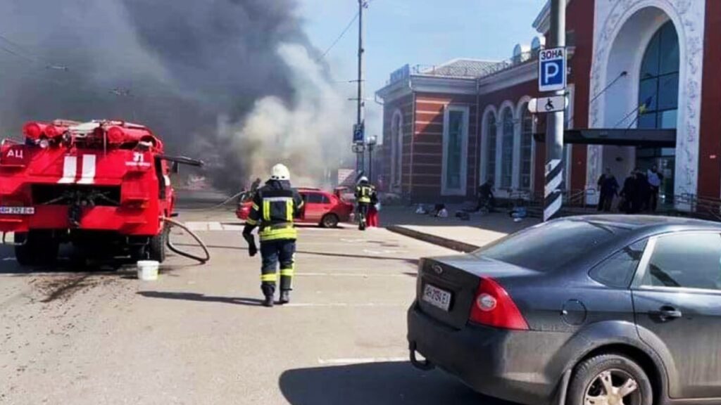 Zelenski dijo en Facebook que el ataque se produjo con misiles «Tochka-U» contra la estación de ferrocarril, «donde se encontraban miles de civiles a la espera de ser evacuados… Murieron casi 30 personas, cerca de 100 resultaron heridas de diversa gravedad».