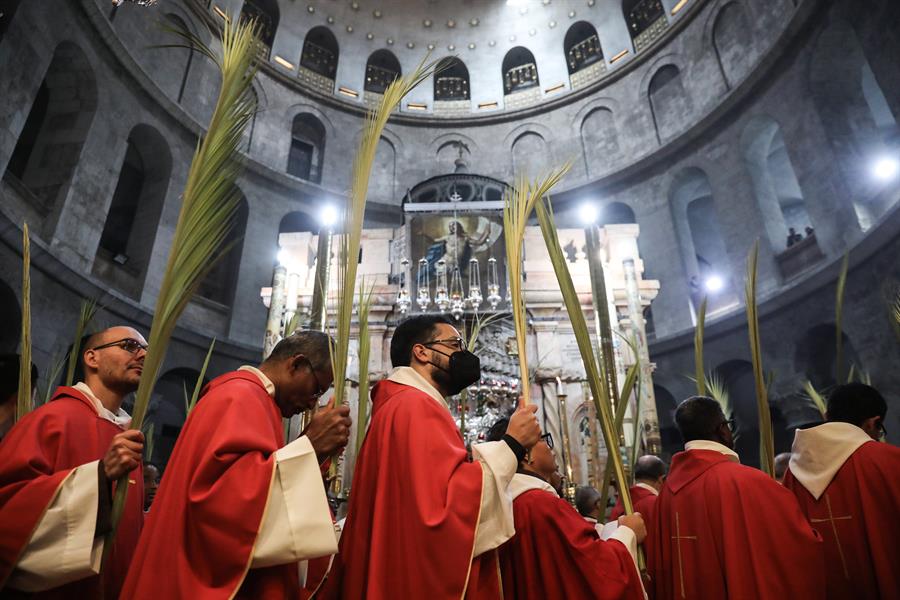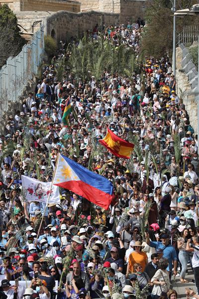 Jerusalén, 10 abr (EFE).- Miles de peregrinos católicos de todo el mundo celebraron hoy el Domingo de Ramos en Jerusalén, tras dos años de festejos muy limitados y sin visitantes debido a la pandemia, y en un clima de inmensa alegría marcado por canciones, banderas y hojas de palma.