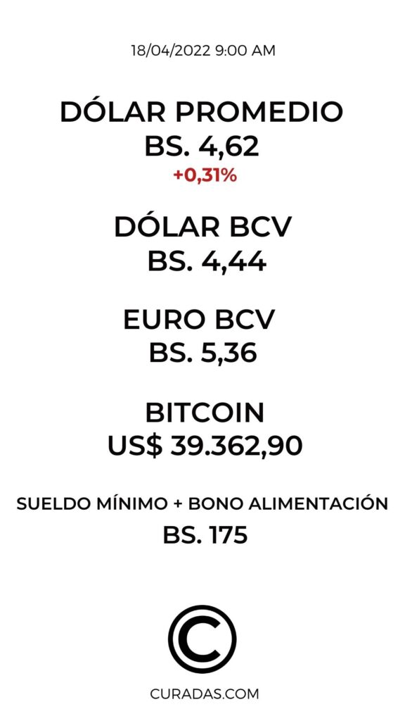 Dólar Promedio: Bs. 4,64 | -0,31%