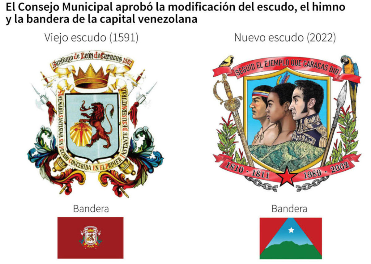 Este lunes, Meléndez promulgó los nuevos símbolos de Caracas, que son el escudo, la bandera y el himno que llegará «a cada escuela» y a «todos los rincones» de la ciudad, afirmó en un acto transmitido por el canal estatal Venezolana de Televisión (VTV).