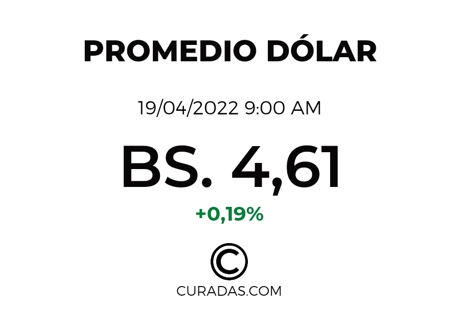 Dólar Promedio: Bs. 4,61 | +0,19%