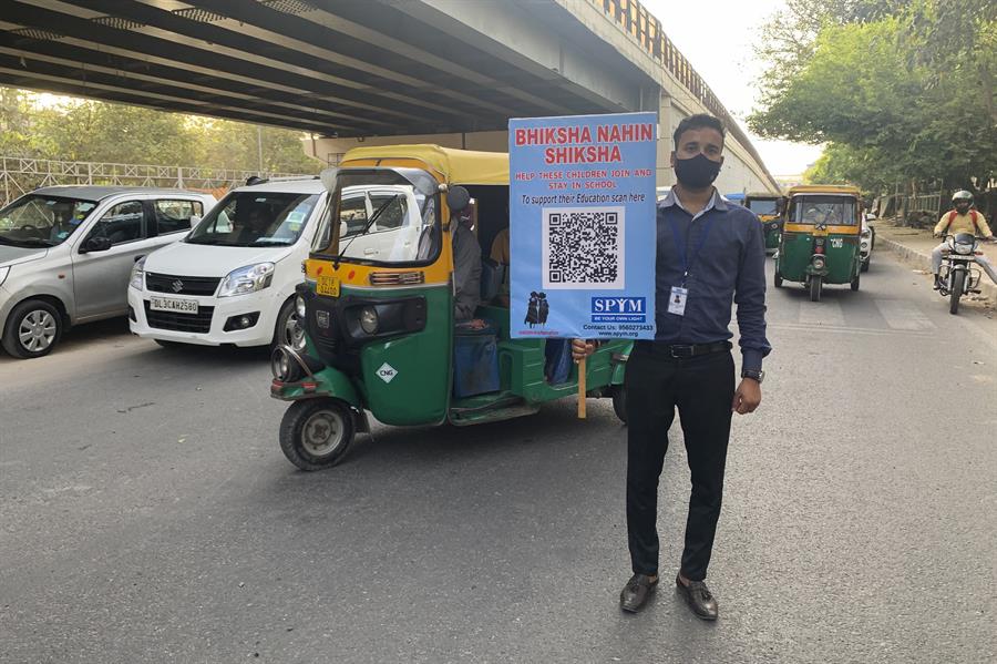 La campaña, iniciada por la ONG india SPYM en Nueva Delhi, facilita el sistema de donaciones a través de un código QR que los usuarios pueden escanear para ingresar dinero a una cuenta bancaria que impulsa la educación y el desarrollo de más de un centenar de infantes que se ven obligados a mendigar en la capital.