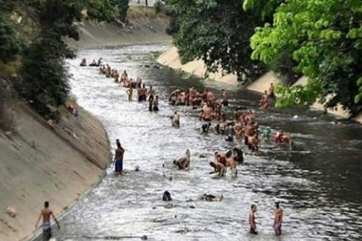 Decenas de hombres vestidos con pantalones cortos y shorts impermeables, intentan conseguir un ingreso extra en las aguas contaminadas del río Guaire, ese que atraviesa Caracas y donde esos «mineros», como se les conoce, ganan su sustento, a través de la mafia de la chatarra.