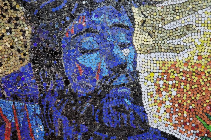 Con este proyecto, que se hizo realidad gracias a la ayuda de cientos de personas que donaron tapas, el artista busca unir el arte, el reciclaje y la fe en los habitantes.