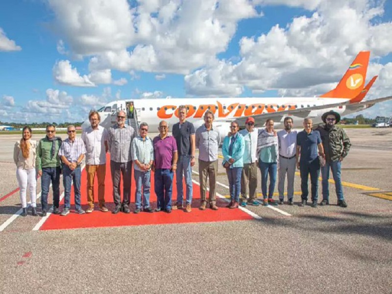 La emisora colombiana Radio Caracol difundió el domingo una foto de la delegación en una pista frente a la aerolínea venezolana Conviasa, indicando que uno de los líderes del movimiento, Pablo Beltrán, se encontraba entre el grupo.