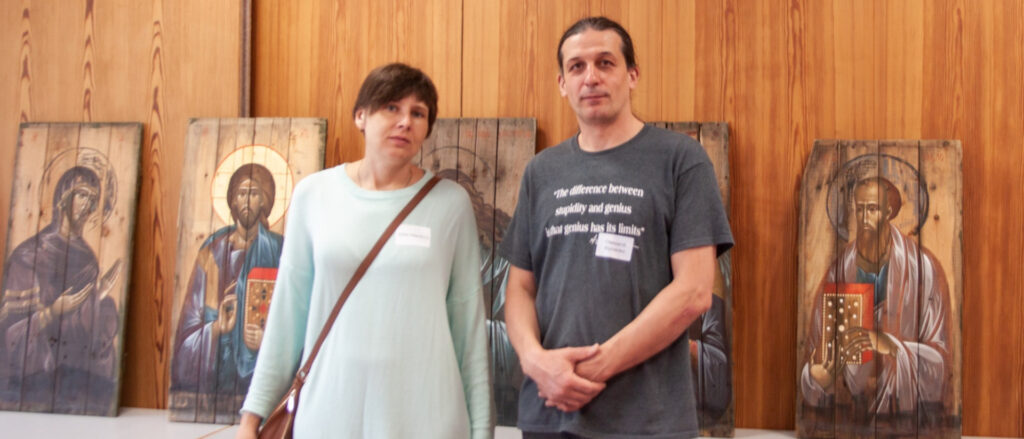 El proyecto echó a andar en 2014 cuando su marido Oleksander, también pintor, se topó con una montaña de cajas de munición vacías en un centro de entrenamiento militar cerca de Kiev, recordó la artista en Bucarest durante la inauguración este martes de una exposición con sus iconos.