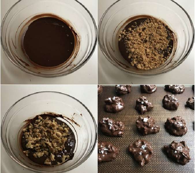 Por eso nos gusta tanto esta receta de rocas de chocolate con turrón y nueces con escamas de sal. Con ella tenemos la sobremesa solucionada en un abrir y cerrar de ojos. Solo necesitamos cuatro ingredientes y menos de 15 minutos. Una receta que, sobra decir, está tremendamente deliciosa. Sigue el paso a paso y disfruta.