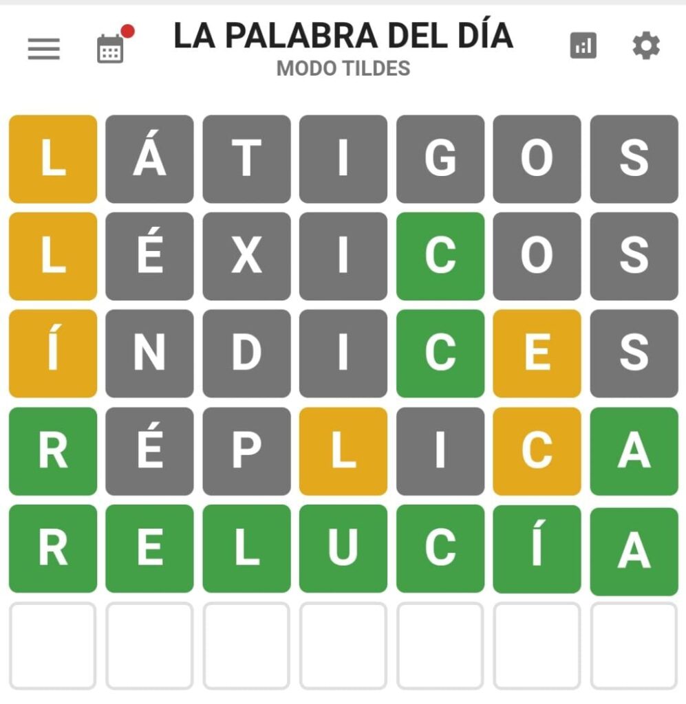 Wordle en español (La Palabra del día) con tildes del día martes 27 de diciembre 2022 fue «Relucía»