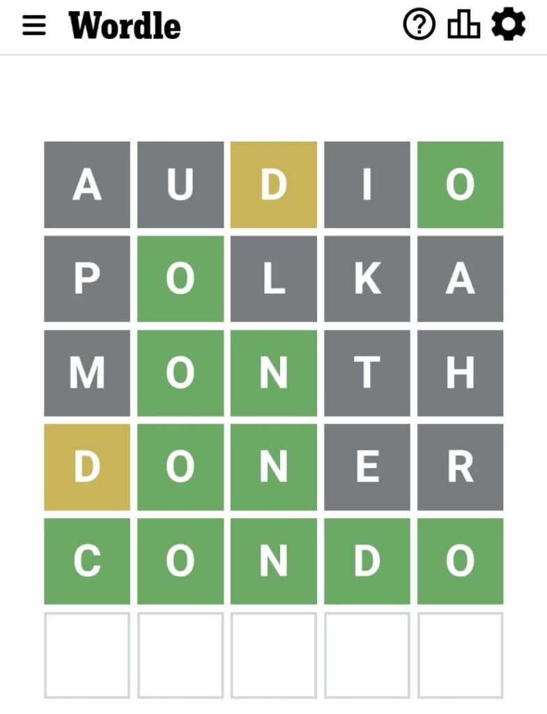 La palabra de Wordle en inglés de The New York Times para el martes 27/12/2022 fue «Condo»