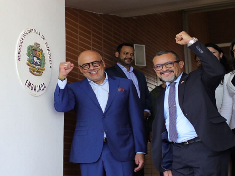 Jorge Rodríguez, presidente de la Asamblea Nacional, recibió este lunes -de forma simbólica- la sede de la embajada venezolana en Brasil, de manos de movimientos sociales que la ocuparon para evitar que fuese «tomada» por representantes opositores de Juan Guaidó.