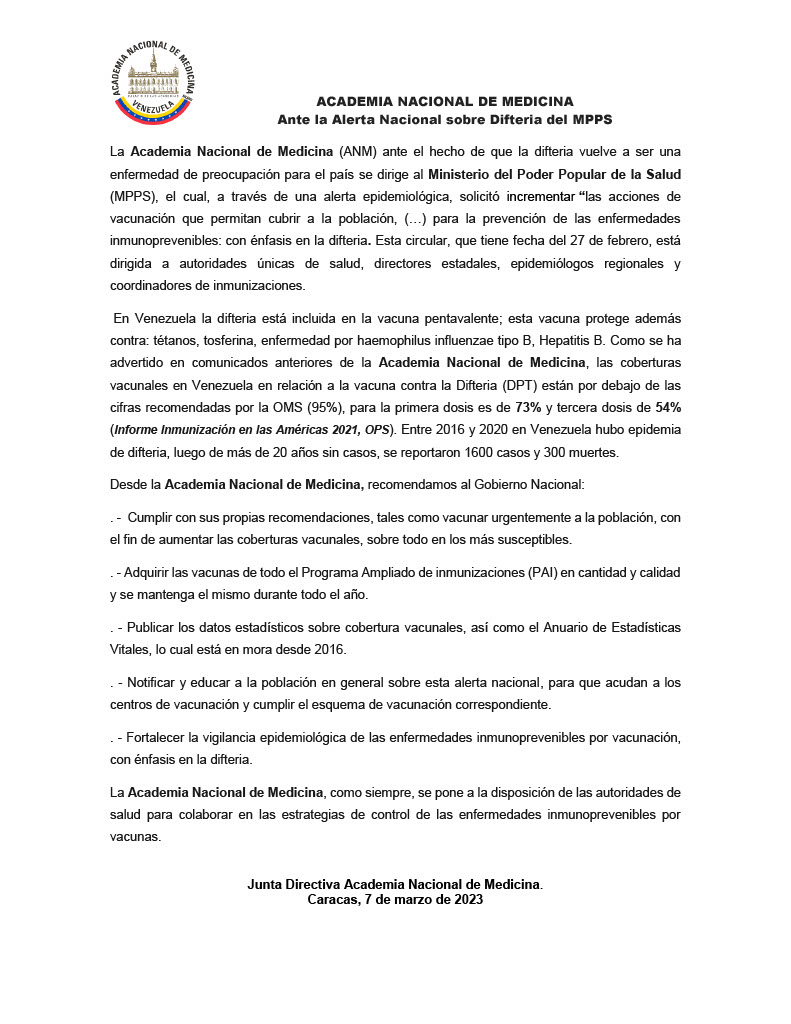 Enrique López Loyo, ex presidente de la Academia Nacional de Medicina, recomendó al Estado venezolano publicar datos estadísticos, desconocidos desde 2016, ante la alerta sobre posible brote de difteria en el país.