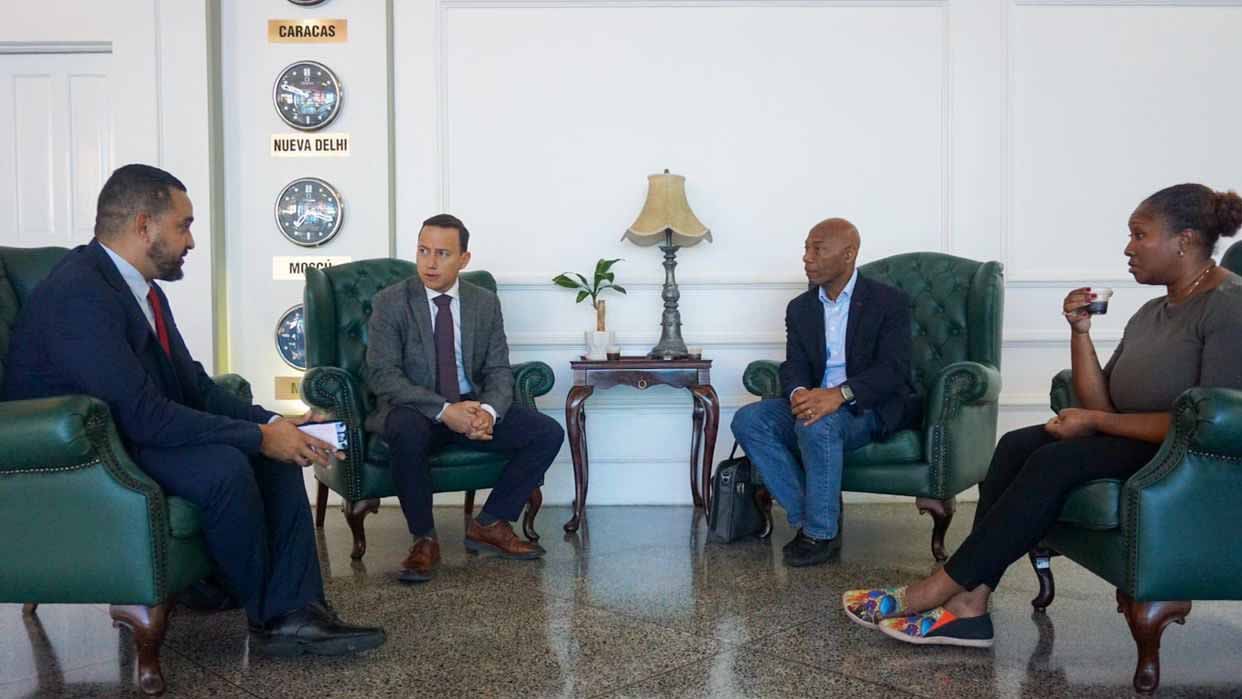 «Recibimos al presidente del BDC, nuestro amigo Gene Leon, quien visita Venezuela, país miembro del Banco de Desarrollo del Caribe, para evaluar las potencialidades de cooperación y proyectos conjuntos en pro del bienestar de nuestra región».