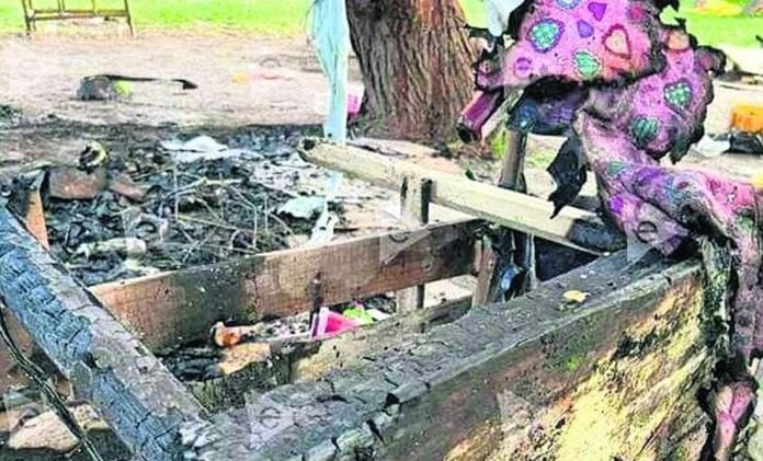 Las viviendas elaboradas con plástico y madera fueron rociadas con gasolina para encenderles fuego.