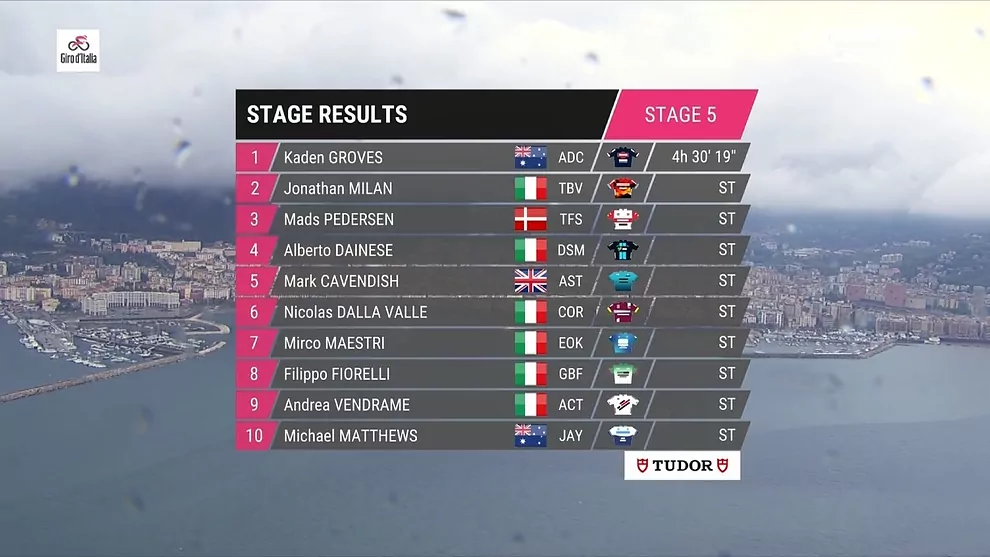 Muy buenas, bienvenidos al resumen y clasificación tras la quinta etapa del Giro de Italia 2023: