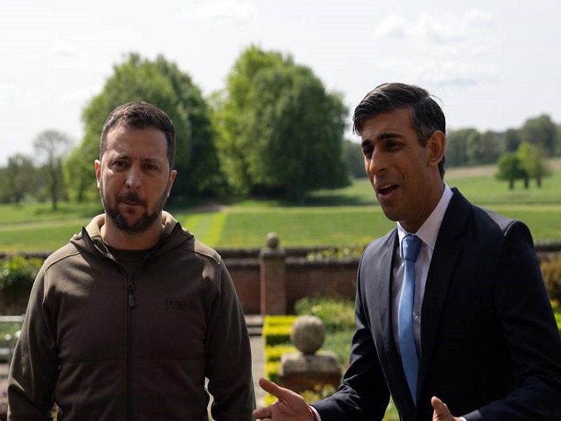 Vestido con su característico atuendo militar, se reunió con Rishi Sunak en Chequers, la residencia de campo de los primeros ministros británicos, situada a unos 65 km al noroeste de Londres.