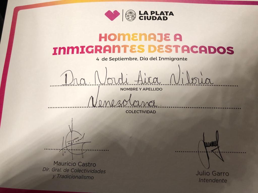 En esta oportunidad, la pediatra venezolana Nordi Viloria, recibió su segundo reconocimiento en Argentina.