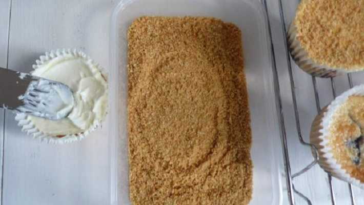 3-Coloca la masa de galletas en el fondo de los recipientes individuales que vayas a utilizar para servir el mousse. Presiona ligeramente con la parte trasera de una cuchara para compactar la base. Reserva en la nevera mientras preparas el mousse.