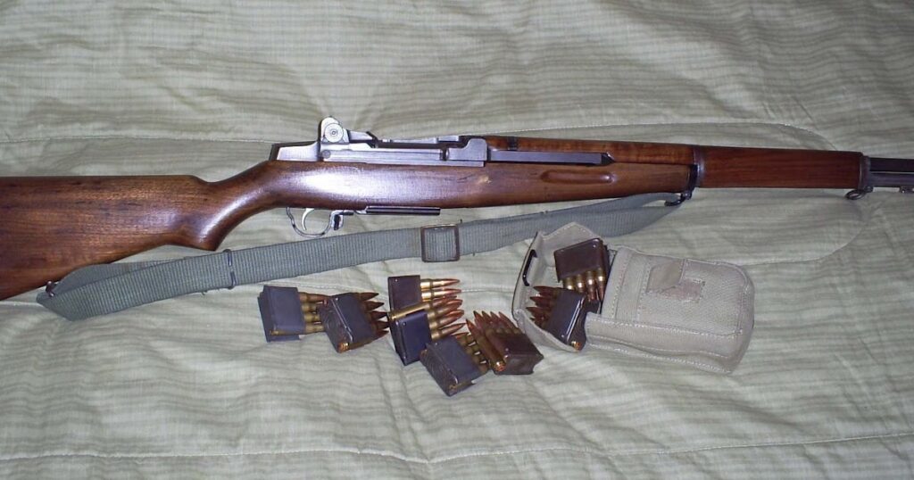 - 150 fusiles Garand calibre .30-06 cada uno con su portafusil y tres peines en bloque, con ocho cartuchos.