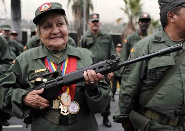 En esa línea de argumentos solo quiero aportar que la cacareada y repetitiva frase chavista sobre la unión de la sociedad civil y los militares que con mucha propaganda relacionan con el contenido del Articulo 326 constitucional, relativo a la corresponsabilidad en la defensa integral de la nación, no se logra militarizando ridículamente a la sociedad civil, ni uniformando a diestra y siniestra a miles de ancianos y a gran parte de la población mas necesitada con ese eufemismo de milicias.