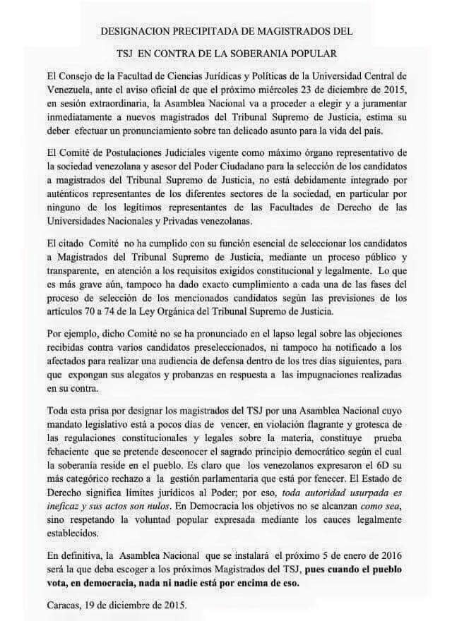 Ante una consulta de algunos contactos en ese momento, me vi en la obligación de responder y señalar las deficiencias y errores grotescos de los pretendidos juristas de la máxima universidad del país que realizaron dicho comunicado. Nunca conocí de algún desmentido sobre esa escrito publicado