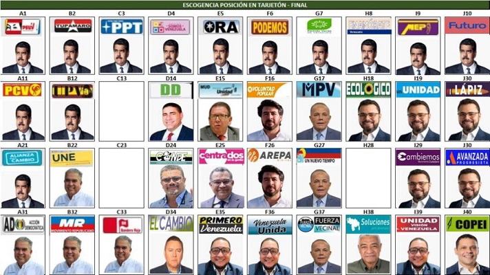 En el caso de la MUD, con su abanderado, Edmundo González Urrutia, pudo escoger solamente un lugar en la boleta y está en la segunda línea, en el centro.