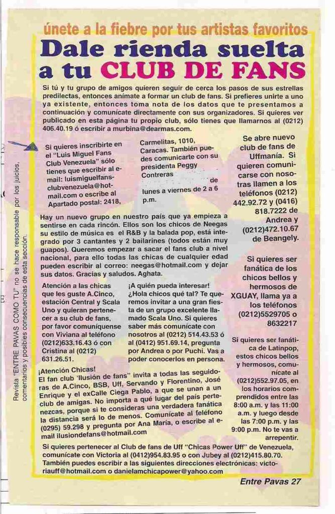 En mi mente, desde que tenía 8 añitos, rondaba la inquietud de hacer el club de fans, pero por tan corta edad no tuve el empuje necesario.