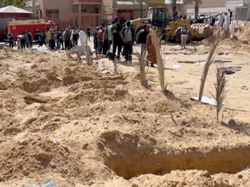 La Protección Civil de la Franja de Gaza indicó el martes que desde el sábado habían sido exhumados 340 cadáveres que habían sido enterrados por las fuerzas israelíes en fosas comunes en el hospital Nasser, de Jan Yunis.
