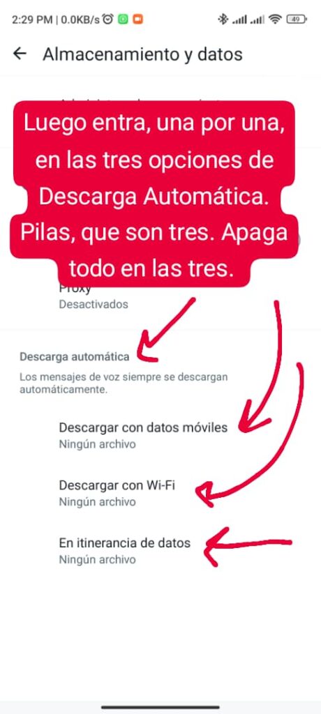 Eso es todo. Seguramente WhatsApp seguirá bajando cosas que no quieres o no sabes. Pero al menos habrás frenado la descarga de un montón de fotos y videos que no querías ver, y de audios que no querías escuchar.