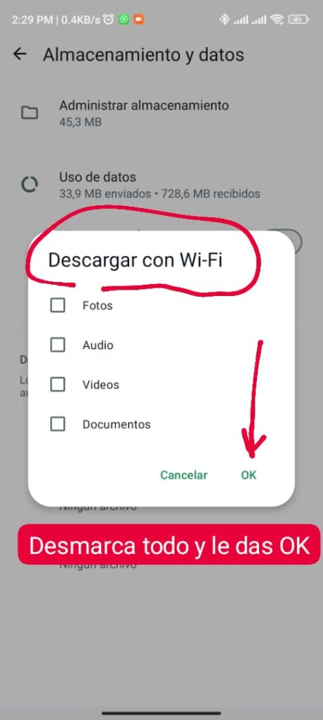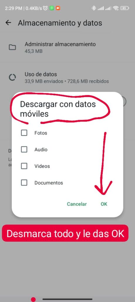 Configura las descargas en WhatsApp para que no se descargue nada automáticamente. Es muy fácil.