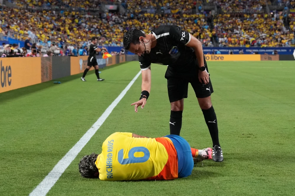 El colombiano Richard Ríos fue lesionado duramente. Ramos ni se dio por enterado. James Rodríguez, como capitán, le reclamó con toda razón ¡y Ramos le sacó la tarjeta amarilla a James y encima, reanudó el partido con Ríos todavía en el piso! Para colmo de males, no consultó el VAR antes de expulsar a Muñoz.
