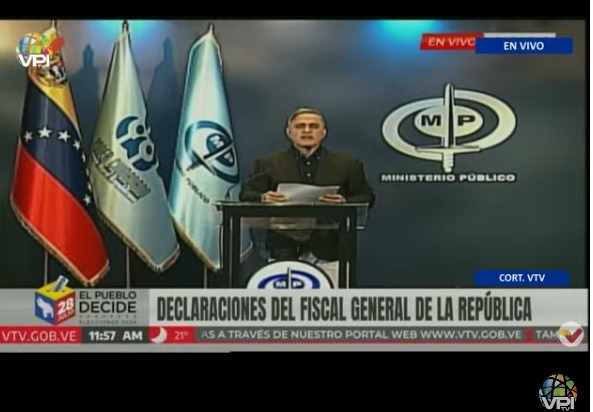 A medio día de este lunes, el fiscal general Tarek William Saab acusa a María Corina Machado, Leopoldo López y Lester Toledo de estar detrás del supuesto sabotaje y ataque informático contra el sistema de trasmisión del CNE.