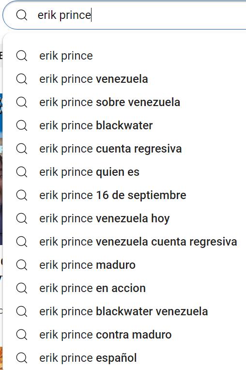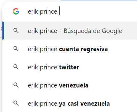 Si buscas Erik Prince en Google en verás que se relaciona con «Cuenta Regresiva», «Twitter» (ahora X), Venezuela y «ya casi Venezuela»