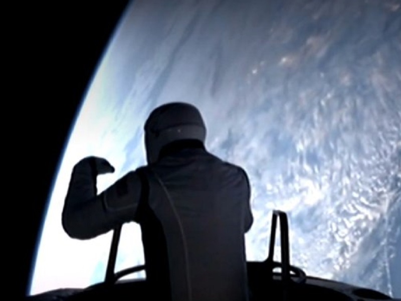 Isaacman emergió de la nave vestido con una combinación blanca, y sujetándose a la estructura metálica instalada sobre la cápsula.