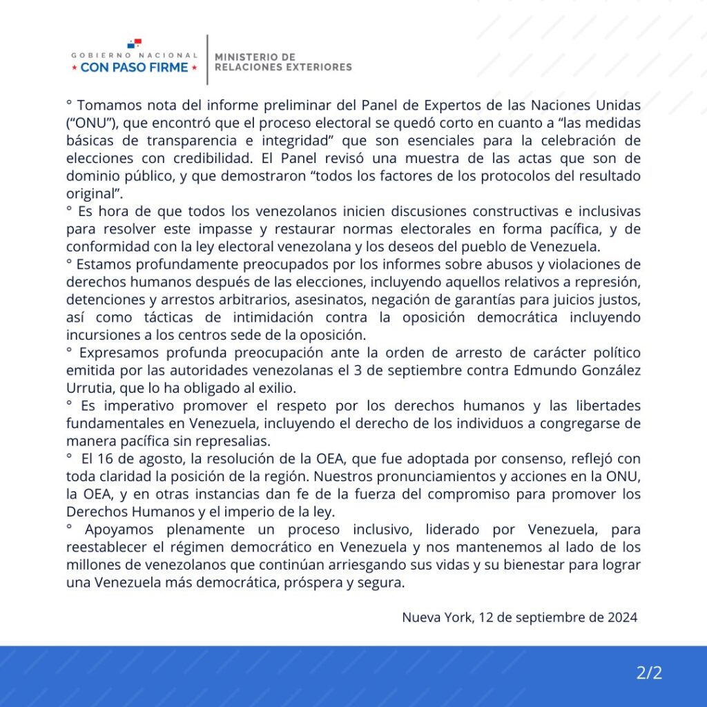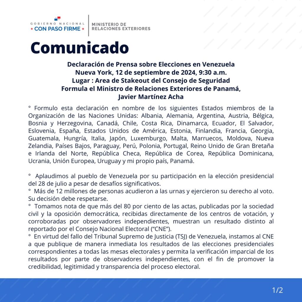 La declaración conjunta, leída por el canciller de Panamá, fue suscrita por Albania, Alemania, Argentina, Austria, Bélgica, Bosnia y Herzegovina, Canadá, Chile, Costa Rica, Dinamarca, Ecuador, El Salvador, Eslovenia, España, Estados Unidos de América, Estonia, Finlandia, Francia, Georgia, Guatemala, Hungría, Italia, Japón, Luxemburgo, Malta, Marruecos, Moldova, Nueva Zelandia, Países Bajos, Paraguay, Perú, Polonia, Portugal, Reino Unido de Gran Bretaña e Irlanda del Norte, República Checa, República de Corea, República Dominicana, Ucrania, Unión Europea, Uruguay.