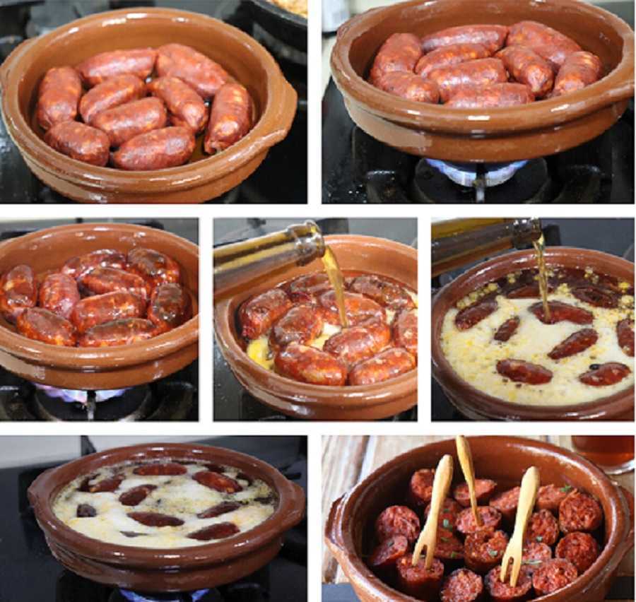 Estos sabrosos chorizos a la cerveza quedan dorados y casi crujientes en su exterior y en la boca se deshacen tras su cocción. Y lo mejor, una vez más es la salsa que queda en el fondo, ideal para echar algún barco de pan que podemos alternar entre chorizo y chorizo.