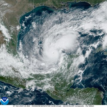 Segundo gran huracán registrado en el golfo de México en dos semanas, Milton se intensificó rápidamente y ahora presenta «vientos máximos sostenidos» de 257 km/h, con ráfagas más fuertes, informó el NHC.