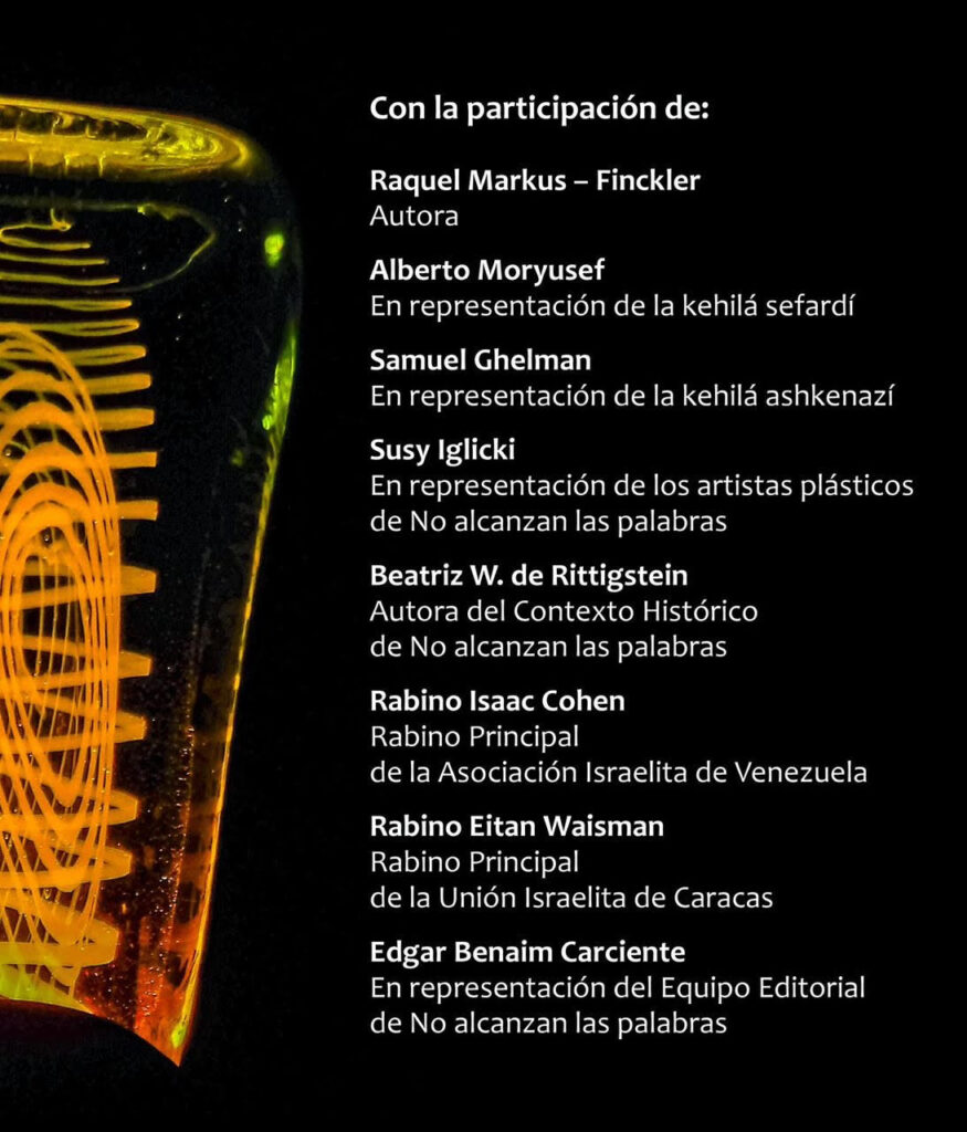 Conozco a algunos de estos artistas y los admiro, a otros no los conozco, pero me impresionan el talento y la originalidad que enriquecen sus obras y al resto me agradaría conocerlos para admirarlos aún más. Un poderoso prólogo de Stephen Sadow nos pone de pie y nos echa a andar por la historia de los judíos en Venezuela.