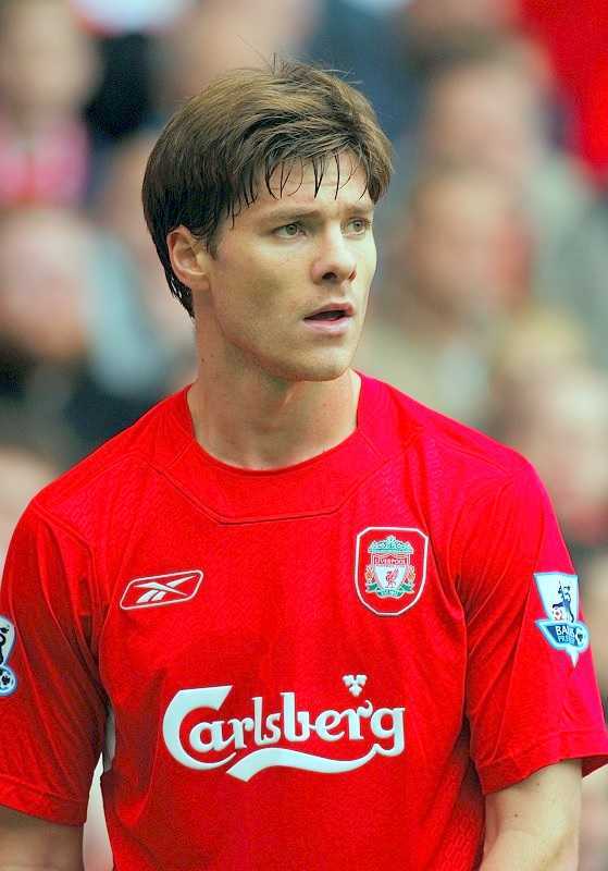 Permaneció en San Sebastián cuatro temporadas, alcanzó en el curso 2002-03 el subcampeonato de la liga en donde fue designado como «mejor jugador español» del campeonato por la revista Don Balón. En 2004 fue traspasado al Liverpool Football Club de Rafa Benítez.