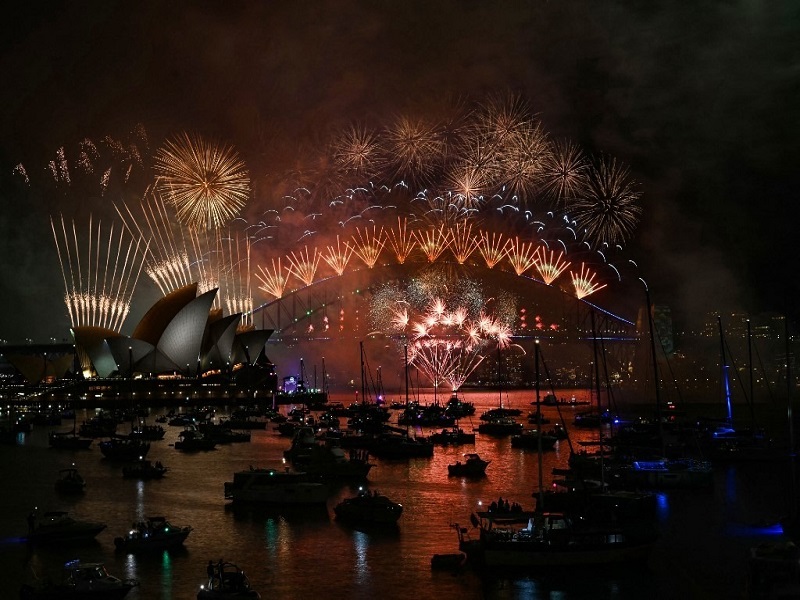 La autoproclamada «capital mundial del Año Nuevo» encendió nueve toneladas de fuegos artificiales desde los emblemáticos Ópera y puente del Puerto de Sídney, el corazón de la bahía, a las doce en punto.